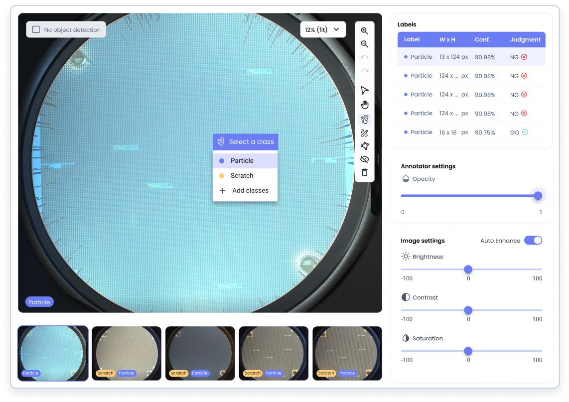 Set thresholds to catch only the defects you care most about. Let the judgment team focus on throughput and yield improvement while we handle defect judgment, removing subjectivity and ensuring objectivity.